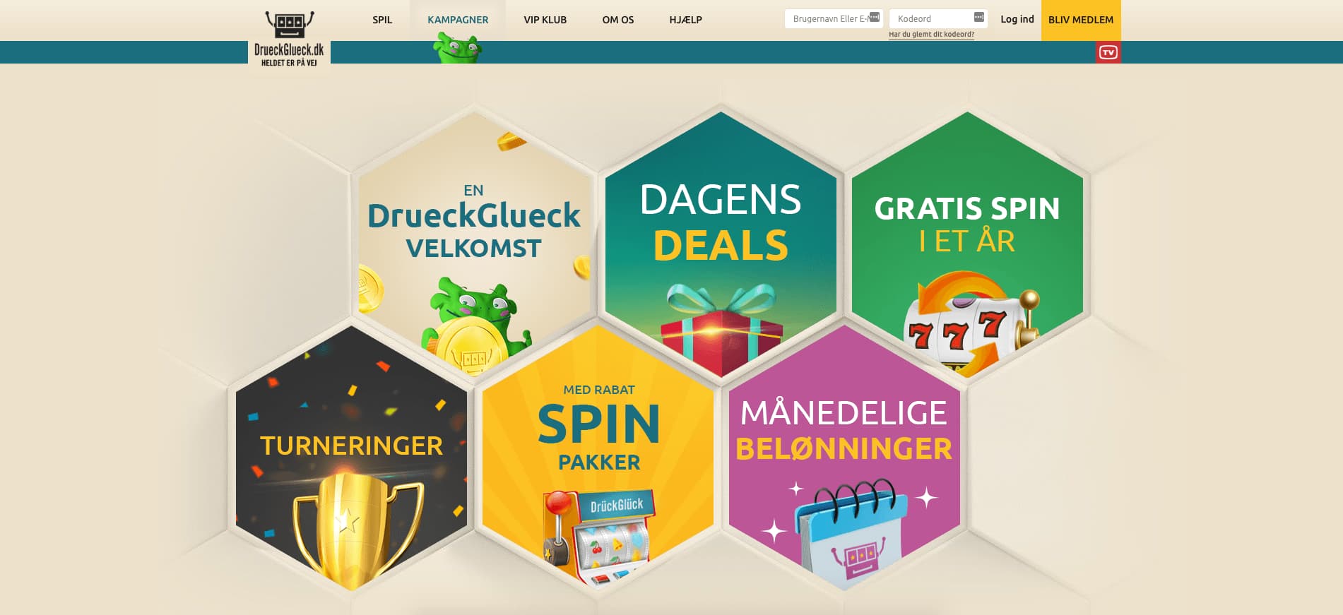 Hvis det at kæmpe dig op i niveau ikke lige er dig, så er det helt iorden. Du bliver ikke set bort fra af den grund. DrueckGlueck har nemlig hele tiden forskellige kampagner, der er tilgængelige for alle medlemmer, kørende på deres hjemmeside.