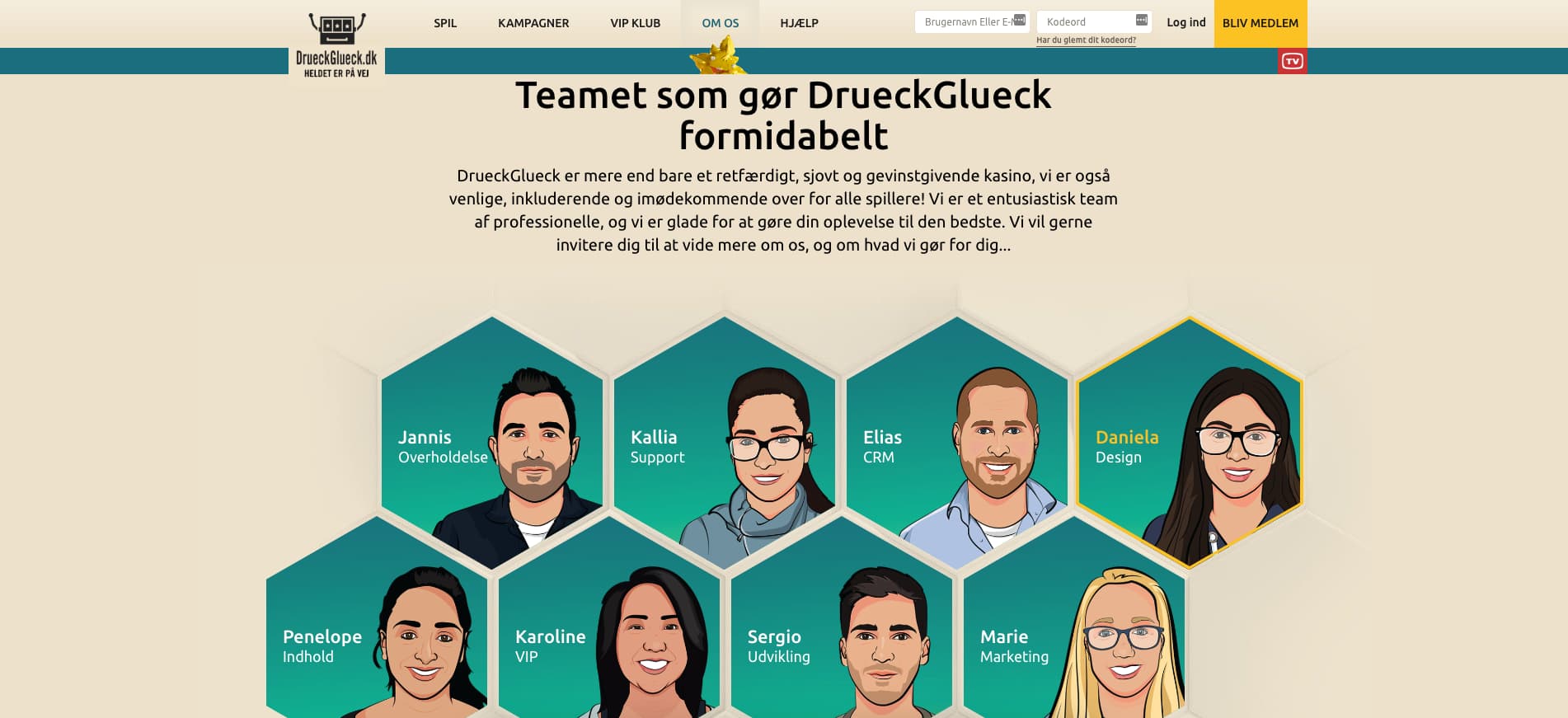 DrueckGlueck er et tysk online casino, som har gjort det mere gennemsigtigt for dig at se hvem der arbejder der. Inde på sektionen hvor casinoet skriver “om os”, kan du læse om de forskellige personer i teamet.