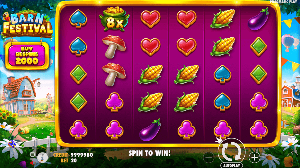 Tag en tur på landet i Pragmatic Plays‘ Barn Festival slot automat. Her emmer det af landlig idyl med marker og bondegårdsdyr. Her spiller du til lyden af banjo, som kun får humøret op. Aktiverer du bonusspillet, går den helt store høstfest i gang med vimpler og lyskæder.